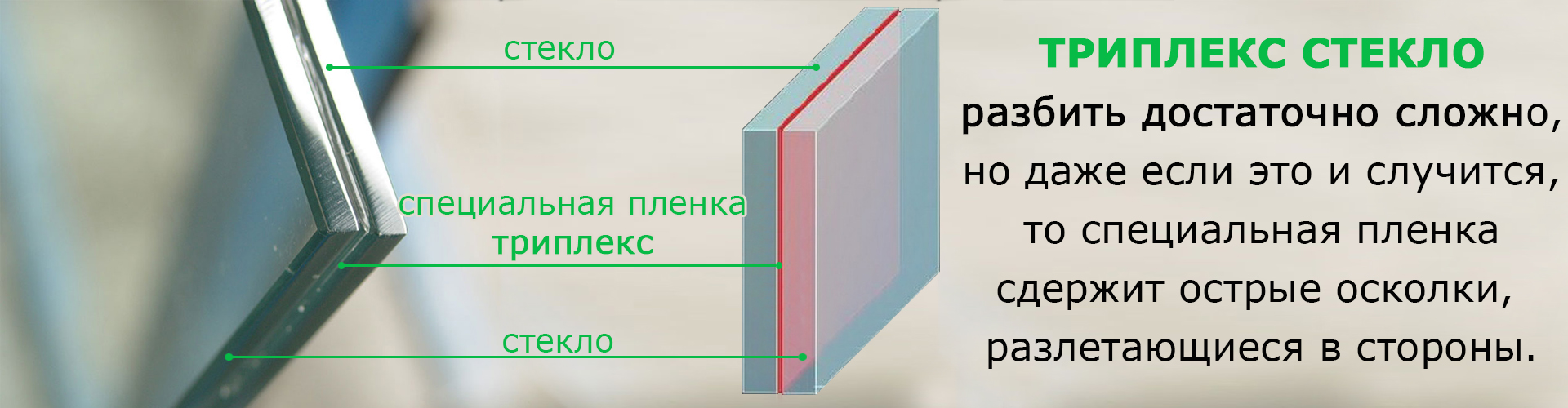 Для повышения прочности окна используют многослойное стекло «триплекс», соединенное прозрачной пленкой. Высокая гибкость и значительная толщина «триплекса» (от 6 до 40 мм) значительно повышают устойчивость окна к ударам. Защитная пленка не дает стеклу разлететься на мелкие осколки при значительном внешнем воздействии. Кроме «триплекса» могут применяться стекла класса защиты А2 и А3.