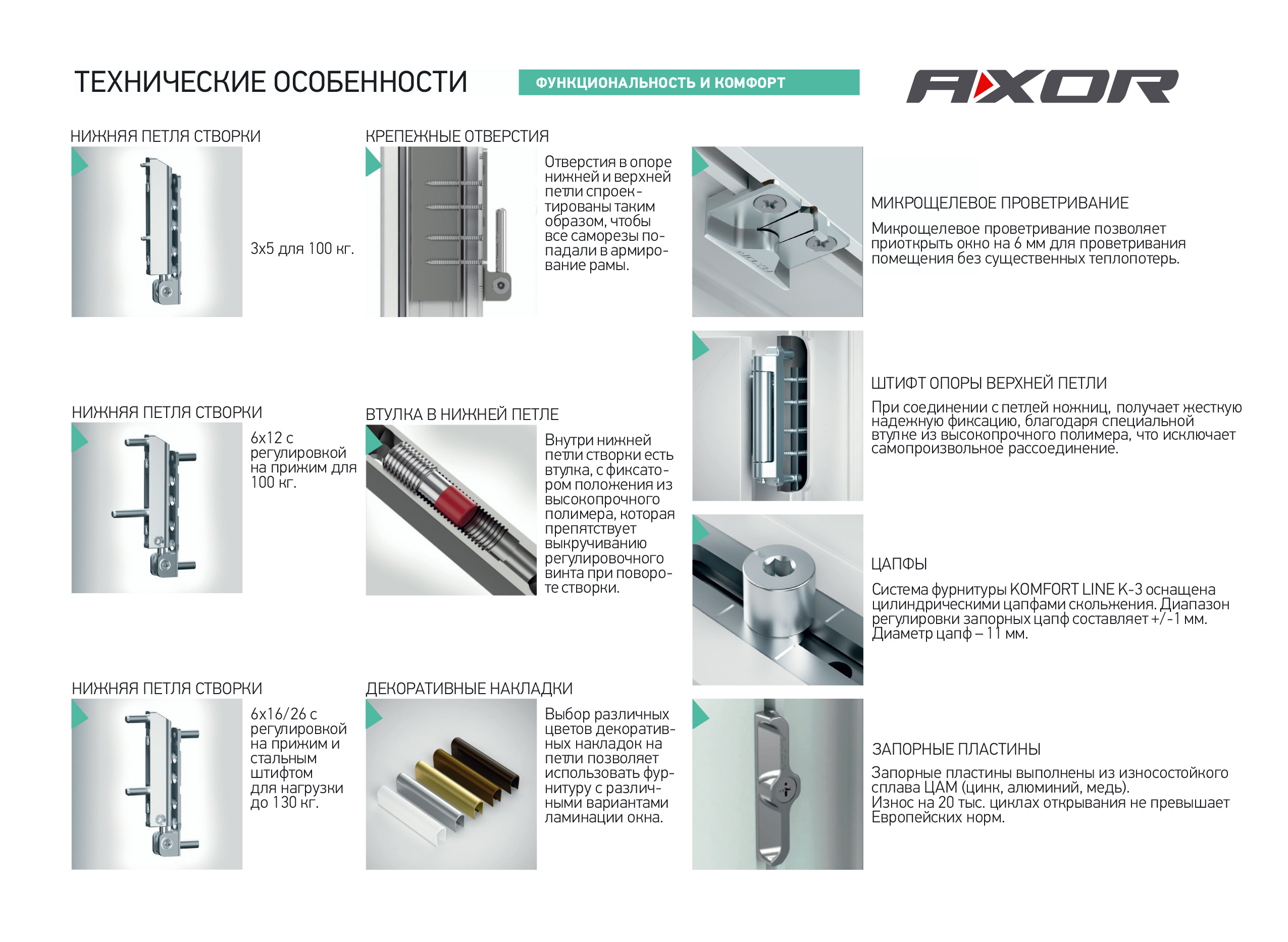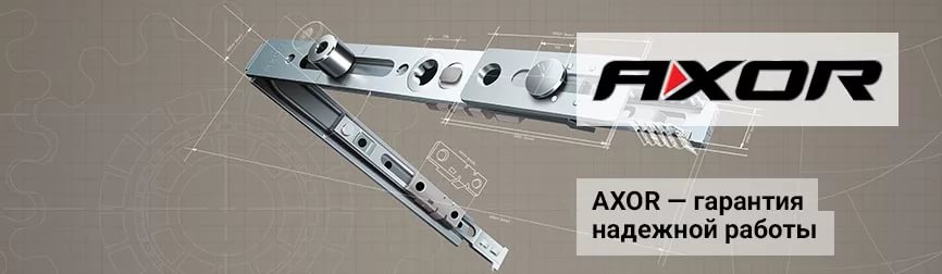Фурнитура AXOR — качественная и надежная продукция среднего ценового сегмента. Ее легко устанавливать и удобно эксплуатировать. Производитель уделил внимание безопасности и эстетичности оконных деталей. Продукция предоставляется с гарантией 10 лет.
